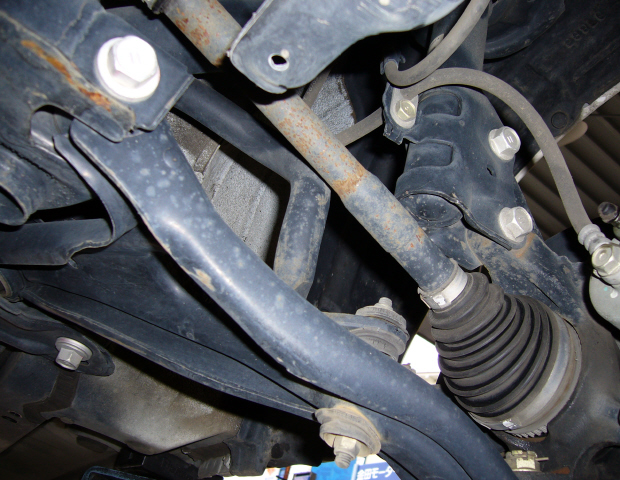 パスターブラック(黒い錆び止め剤)で、下廻り(足廻り)をコーティングしていきます